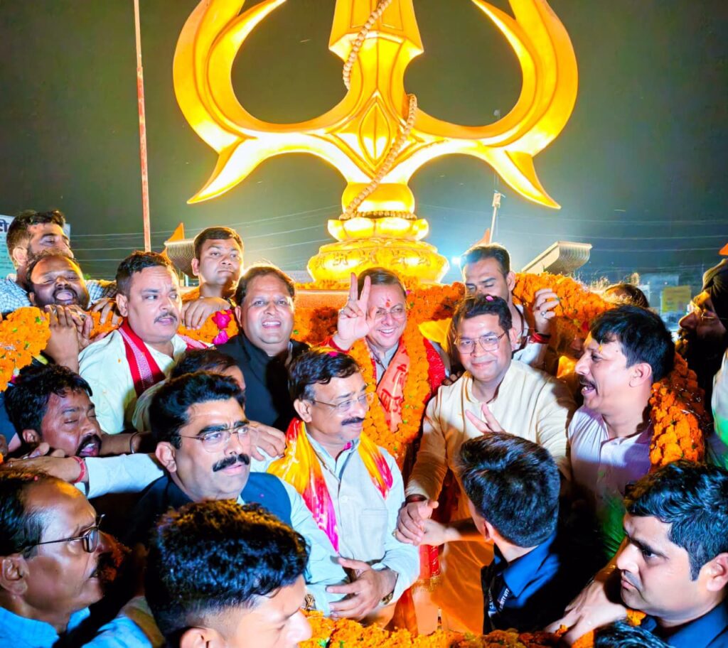 त्रिशूल चौक पर सीएम धामी के स्वागत में उमड़ा जनसैलाब, महापौर ने भेंट की गदा
